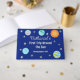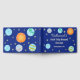 This small First Trip Around The Sun silver foil guest book and album in a dark blue variation is a cute addition to the sun, stars, and planets theme for a baby boy's 1st birthday. It coordinates with the other galaxy party decor, check out the full collection. This design features a hand-painted sun, stars, and watercolor planets on the front and reverse side.