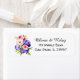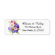 Étiquettes d'adresse de retour florales violet, rose, vert et blanc.