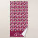 Roses rouges, pivoines roses et lilas violets sur un arrière - plan blanc créent un bel ensemble de serviettes de bain à l'allure vintage. Une barre de couleur solide au fond, dans une teinte rouge complémentaire, a de l'espace à personnaliser avec votre nom.