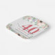 This 40th wedding anniversary party paper plate features a graceful watercolor floral border adorning the top and bottom. The soft hues of peach and purple offer an elegant charm, perfect for an anniversary celebration. Personalize this elegant paper plate with the name of the couple.