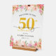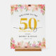 Greet your guests with this elegant 50th wedding anniversary acrylic welcome sign, featuring a graceful watercolor floral border across the top and bottom. Soft hues of pink and peach add a delicate charm, making it perfect for celebrating an anniversary in the spring or summer.
