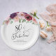 Elegant paper plates for her 80th birthday party that feature "80 & Fabulous" in a stylish script and watercolor bouquets of burgundy red, blush pink and purple florals.