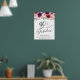 Elégante affiche de bienvenue et accessoires photo pour sa fête de 90e anniversaire qui présente "90 & Fabulous" dans un script de calligraphie élégant et bouquets d'aquarelle de fleurs rouge bordeaux et rose roux avec de la végétation sauge légère.