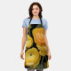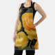 Beautiful floral Apron that will elevate your kitchen style. Yellow and gold ranunculus flowers bloom on a black background for a very stylish look
