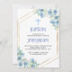 Elegant Floral Blue Cross Baptism Boy Invitation