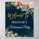 Elegant Floral Blue Gold Retirement Party Welcome Poster
