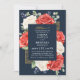 Set the stage for a memorable event with this Red and White Floral Green Muslim Wedding Invitation. This lush and luxurious floral wedding invitation features a frame of red and white roses and blue berries against a blue background with a QR code for online RSVP. It is perfect for an elegant celebration. PLEASE NOTE: The gold featured in this design is NOT real foil.