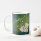 Happy mornings with lovely floral tea or coffee mug. Give a made-to-order mug from Zazzle to someone special, or treat yourself to a design that brings you joy or makes you laugh. In a striking green background with watercolor white flowers and her name in script. If you have design questions, just send a chat and we'll be delighted to assist.