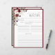 Designed to accompany our matching Bridal Shower Recipe Binder, part of a matching Bridal Shower Invitation Suite, this pretty recipe card features a bouquet of burgundy and pale pink flowers and botanical greenery, bordered in a rich burgundy red(carefully digitized) and pretty hand lettered script calligraphy. There are plenty of lines for the recipe, and the back matches the front, so each guest can give the bride two recipes. A margin has also been left on the page to accommodate the margin. CLICK HERE for the coordinating Recipe Binder: https://www.zazzle.com/collections/elegant_burgundy_floral_watercolor_bridal_shower-119280454460170395
