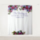 Elegant photo booth custom wedding couple backdrop with beautiful fuchsia pink, and light purple flowers with foliage and leaves. Easy to personalize with your event's title, name, and date.