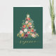 This elegant holiday card features a lovely floral Christmas tree in popular watercolor hues of burgundy, pink, orange, white and green. The rich bluish-green background colour adds contrast to highlight the beauty of the colourful tree. The word rejoice is splashed across the bottom of the card in a lovely modern script type face. A sample inside text greeting is included that you can order as is or edit the text with your desired holiday greeting.