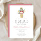 Personalized Elegant Floral Cross First Holy Communion Invitation.