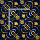 Elegant Floral Damask Navy Blue & Gold Sunflower Fabric