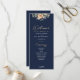 Dark blue program for weddings, with watercolor apricot flowers and garden foliage. A simple yet elegant contemporary botanical design inspired by boho vintage style, with monogram on the back.