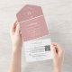 Elegant Floral Dusty Pink Monogram QR Code Wedding All In One Invitation