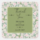 Express your heartfelt thanks with the Elegant Floral Embrace Wedding Square Sticker, a beautifully crafted token of appreciation for your wedding guests. This elegant sticker features a lush floral border in soft hues of pink, white and green, encasing a customizable moss green square. The words "Thank You" are gracefully scripted at the top, with space below to personalize with your names and wedding date. Perfect for sealing envelopes, adorning favours, or adding a touch of gratitude to any wedding-related item.
