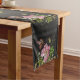 Elegant Floral Embroidery Pattern Black Background Long Table Runner