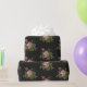 Elegant Floral Embroidery Pattern Black Background Wrapping Paper