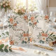Announce your elegant affair with this sophisticated design featuring a faux embossed relief effect. The romantic artwork highlights a wreath of peach roses and coral ranunculus in a 3D paper craft style, flat printed to simulate high-end texture and shadow depth. Easy to customize with your details for a timeless, luxury aesthetic.