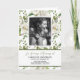 Create your own funeral program featuring a classic white background, rustic white botanical florals, a photo of the person who has passed away, the funeral details, an obituary, order of service and a personalized thank you note on the back.