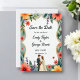 This elegant watercolor floral save the date invitation is perfect for a modern wedding. The romantic design features a sleek watercolor floral frame with a bride and groom illustration and black calligraphy on a white background.