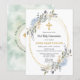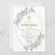 © Socialite Designs & LICENCORS. Celebrate your child's first communion with an elegant floral and gold-themed invitation. This customizable invitation features beautiful flowers, a gold text banner, and a gold cross. Personalize it with your own saying on the back to make it truly unique. Order yours today for a memorable and elegant confirmation celebration.