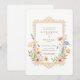 An elegant wedding invitation design featuring a refined gold ornamental frame paired with soft pastel florals. Delicate watercolor flowers in blush, peach, and blue tones create a romantic and timeless aesthetic, perfect for classic and garden-inspired weddings. The clean layout and graceful typography balance luxury with softness, making this design ideal for couples seeking a sophisticated yet warm wedding stationery style.