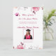 This elegant floral graduation announcement features a soft watercolor design with pink and purple flowers framing the text. The gold accents and stylish script font add a sophisticated touch, while a small pink graduation cap icon enhances the celebratory theme. Perfect for honouring a graduate with a classy and feminine aesthetic. Fully customizable for personal details.