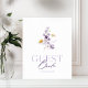 A beautifully designed guest book sign featuring delicate floral accents in soft purple and pastel tones. Perfect for weddings, bridal showers, and special events, this elegant sign invites guests to leave their messages and well wishes. A stylish and sophisticated touch to any celebration.