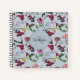 This Elegant Floral Hummingbird Pattern Blue Notebook custom hardcover notebook features a hummingbird and floral pattern with hand-drawn exotic flowers, birds, and foliage on the front and back covers, all on an elegant light blue background. Personalize with your monogram and name for a unique touch. Available with blank, wide-ruled, or college-ruled pages and your choice of spiral colour.