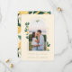 Our lemon chiffon wedding save the date photo card design captures sophistication & elegance with our original hand-painted watercolor lemon tree with yellow blossoms, flowers, and leafy foliage. Crisp citrus yellow shades are paired with deep jade greens to create this fresh wedding design. An elegant arch photo frame to add your special photo. All of the florals and artwork are meticulously hand-painted by us, to create our unique memorable wedding designs. Personalize the text, font, and background colours to suit your design preferences.