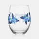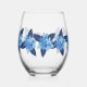 Elegant Floral Monochromatic Blue Design Stemless Wine Glass