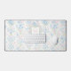 Create an elegant, heirloom-inspired workspace with this personalized floral monogram desk mat. Featuring a delicate all-over pattern of soft pastel florals in blush pink, powder blue, and gentle greenery, this design brings timeless charm and a light, airy feel to your desk. The subtle centered monogram framed by an ornate floral wreath adds a refined personalized touch without overwhelming the graceful background.