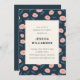 Elegant Floral Navy Pink Modern Graduation Party Invitation