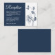 This elegant and minimalist wedding reception card features a beautiful and delicate Prussian blue orchids line drawing design, over a classy white background on the right side. Easily edit the template fields to add your reception information in a modern and simple white font over a Prussian blue background on the left side of the card.