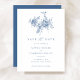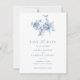 Elegant Floral Vintage Ornament Navy Blue Save the Date Wedding Invitation. Modern Wedding Invitation Template. Victorian Floral Botanical Illustrations. Floral Blue Wedding Save the Date Card