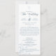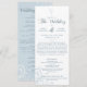 Célébrez votre grande journée en style avec un programme de mariage bleu clair magnifique! Découvrez la beauté de votre célébration spéciale avec cette invitation unique. Son écriture élégante et ses motifs floraux délicats donneront à votre mariage un aperçu de la saison magique du printemps et seront précieuses pour les années à venir.