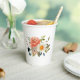 These beautiful paper cups feature a delicate floral arrangement with soft peach and white flowers.
