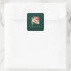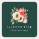 Elegant watercolor flowers and foliage bouquet, personalized stickers, with two lines for custom text. Background colour, shown in emerald green, can be customized.
