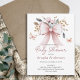 Elegant pink floral bow watercolor illustration. Spring and fall themed baby shower. baby girl baby shower, butterfly baby shower, coquette pink bow baby shower invitations, bohemian whimsical botanical floral baby shower