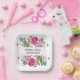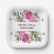 Elegant Floral Pink Peony Monogram Wedding Paper Plate
