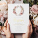Elegant Floral Pink Wreath Girl Baptism Foil Invitation.