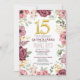 Celebrate your special day with our beautifully designed Quinceañera invitation template. Featuring an elegant gold number "15" and surrounded by exquisite floral arrangements in shades of pink and burgundy, this invitation sets the perfect tone for a memorable quinceañera celebration. The high-quality design ensures a sophisticated look that will impress your guests and make your event unforgettable