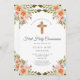 Personalized Elegant Floral Religious Cross First Communion Invitation