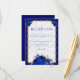 Provide important details about your wedding reception, with this elegant invitation enclosure card, featuring gold jewelled filigree framing soft white satin, crowned with blue roses. The simulated royal blue metallic background enhances the luxurious feeling.