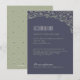 Hand drawn ornate greenery floral design on dark navy background, sophisticated and elegant, perfect for outdoor garden wedding, country, rustic wedding; or a vintage wedding, winter or summer. Natural colour scheme, sage green, dark navy and pale beige. Custom wedding accommodation card for your convenience.