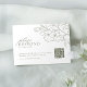 Elegant delicate hand drawn flower illustration and modern script typography details, in dark sage green and white colour, simple and romantic. Great floral wedding rsvp cards with QR code for modern rustic wedding, country garden wedding, and simple boho wedding in summer and winter.