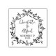 This "Save the Date" rubber stamp features a flower frame with couple names and date.