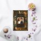 This beautiful design evokes old world charm and elegance, and is perfect for the couple who love classic fine art. This luxurious floral still life was painted in 1790 by the Dutch artist Paul Theodor van Brussel, and features roses, tulips, iris, peonies and narcissi in a terracotta urn. It is painted in warm, rich Earth tones and includes a glowing faux gold border and photo template.