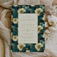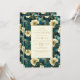 An elegant botanical design featuring a lush floral pattern in cream, gold and teal provides the background for the gold-coloured text on a pale cream rectangle. The floral pattern is repeated on the back of the card.